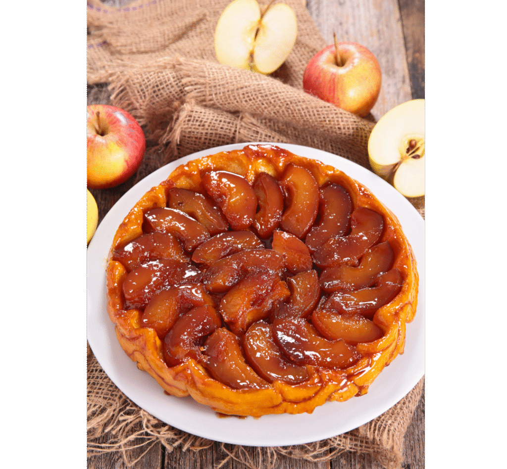 Our first dessert on the list is here and it is fabulous. Tarte Tatin is an upside-down caramelized apple tart that is made by cooking sliced apples in caramel and then covering them with a layer of puff pastry. The dish is baked until the pastry is golden brown and the apples are tender, then inverted onto a serving platter to reveal the caramelized fruit on top. This is such a classic delight, and one that anyone who likes apple pies or similar dessert will be super excited to try!