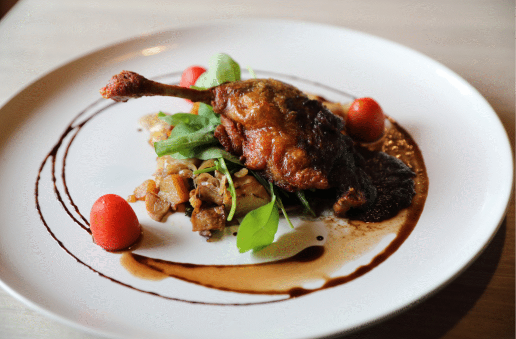One of the most famous dishes from the Nouvelle-Aquitaine region of France is “duck confit”. Duck confit is made by cooking duck legs in their own fat until they are tender. The legs are then stored in the fat, which helps to preserve them and add flavor. To serve, the legs are heated in a pan and then served with a variety of accompaniments, such as roasted potatoes or a mixed green salad.