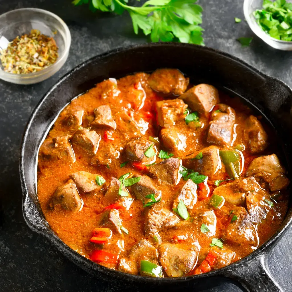 “Rougail Saucisse,” is a dish made with spicy sausages simmered in a sauce of tomatoes, onions, and spices, often served with rice. The simplicity of the recipe and ingredients along with how warming and hearty the dish is, has made this a staple of Guyanese cuisine!
