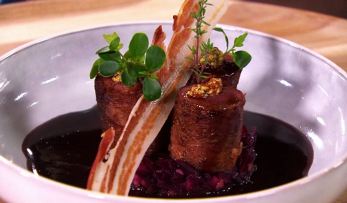 The star of this dish is a saddle of hare (râble) that is marinated in red wine, garlic, and herbs, and then braised until tender. The braising liquid is then thickened to create a rich, flavorful sauce that is served over the hare. Voila!