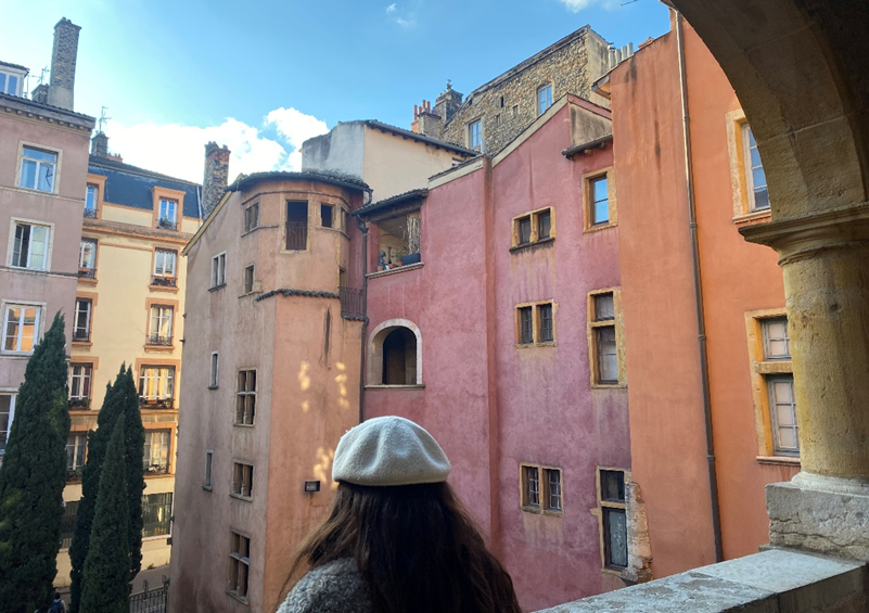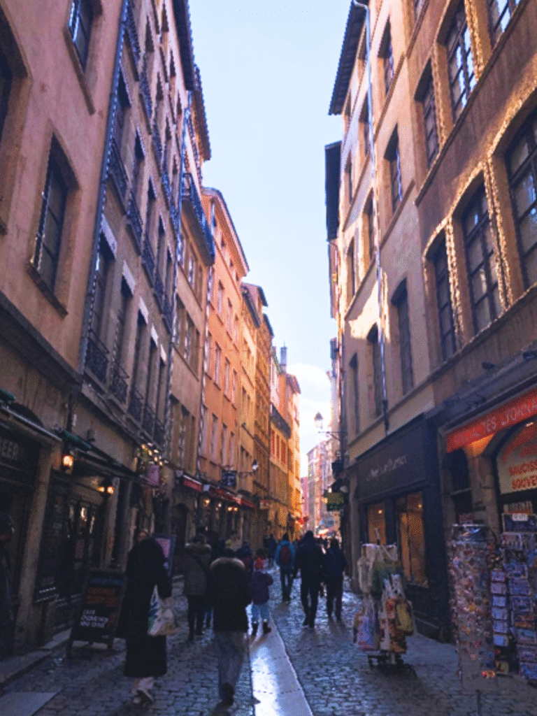 A beautiful pastel courtyard in the heart of Lyon’s old town.