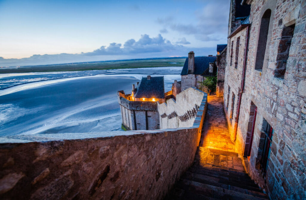 Mont Saint-Michel is located in a tidal bay which can rise and fall very quickly. The tides as they move around the sides of the island can be a source of relaxation and introspection. It is a beautiful environment in which you can enjoy a quiet moment and the spectacular beauty of Normandy.